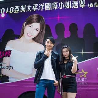 而另外一面,參選亞洲太平洋國際小姐選舉的佳麗,紛紛拿出帶有個人大頭照的大型宣傳板,邀請途人掃QR CODE支持,為即將來臨既決賽加溫。