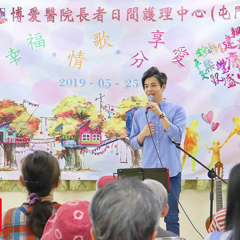 2019 年香港唱作男新人-Steve Ho繼早前邀得關心妍出席發佈會又到街頭慈善Busking活動後,他繼續擔當「音樂社企」角色,進行「幸福、情歌、分享愛巡迴説唱會」,將幸福透過音樂分享給一班老人家。Steve去到護老中心不單以自身故事及音樂分享愛,更帶領一班年輕小樂手以音樂為老人帶來歡樂,希望以身作則,讓他們學懂「施比受更有福」的道理。活動當日出現令Steve 印象深刻及感動一刻,Steve 表示:「原本說唱會純粹以音樂關懷一班老友記,但佢地竟禮上往來,秘密練兵一個月,用木箱鼓演奏《紅日》,更背左我首創作《幸福的情歌》,一邊唱一邊演奏,所以即興同一班老友記係無準備下Jam 歌,真係好驚喜、好感動!」音樂除了可以調節心情外,Jam歌期間老友記隨著音樂手舞足動,也算是一個好好的協調運動。