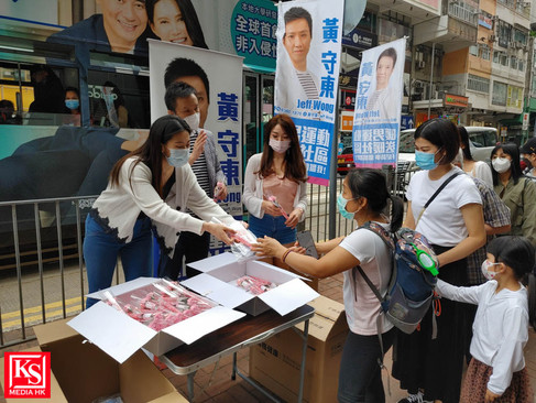 應屆亞洲小姐陳美儀、譚夢娜支持黃守東於灣仔區社區工作到灣仔軒尼詩區派發花束、口罩及禮品祝福市民母親節快樂
