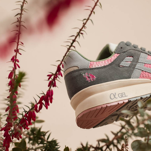 ASICS Sportstyle 與澳洲時尚名所 Up There合作逾十年,首次推出聯乘鞋款Up There x ASICS GT-II,並採用兩地標誌性花卉作主題,結合自然文化與運動時尚。鞋身的粉紅色代表澳石楠(Pink Heath),即Up There起源地澳洲維多利亞州s;岩灰及鼠尾草綠色則代表野路菊(Japanese Chrysanthemum),即ASICS品牌起源地日本兵庫縣的縣花。將兩地獨特的花卉和色彩交織成別緻清新的別注單品。