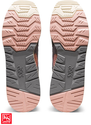 Up There x ASICS GT-II 鞋跟兩側分別繡著代表兩地的花卉:銀白日本野路菊和粉紅澳石楠,呼應鞋身Pink Heath色調的紮染網布。鞋身細節的灰色絨面革及鼠尾草綠鞋跟內裡,靈感源自野路菊的葉,並以鋸齒形縫線固定標誌性ASICS虎爪紋,呈現現代有機時尚風格。隨鞋更附送Up There x ASICS GT-II 獨有多款顏色鞋帶搭配 。