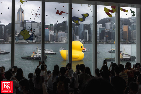 香港 —— 由創意品牌 AllRightsReserved (ARR) 主辦、荷蘭藝術家霍夫曼 (Florentijn Hofman)創作的大型海上公共藝術展覽《橡皮鴨二重暢》,今日傍晚時分圓滿落幕。為 紀念橡皮鴨訪港十周年,主辦單位 ARR 特別於今日父親節迎來壓軸活動——橡皮鴨維港巡遊,其中一隻橡皮鴨於中環游經尖沙咀海域折返,歷時兩個多小時,吸引大批公眾於維港兩岸 駐足欣賞,橡皮鴨更成為首個在維港海上巡遊的大型戶外充氣藝術裝置,為這段藝術旅程畫上完美 句號。天公造美,連日的雷雨稍為緩和,吸引不少鴨粉,絡繹不絕的前往拍照留念。