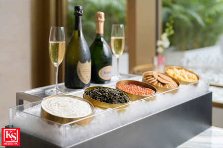 挑選任飲香檳的賓客更可獨家品嚐歡迎魚子醬體驗,無限量細味以小班戟及鮮忌廉配搭的Amur魚子醬及三文魚子,為香檳錦上添花。