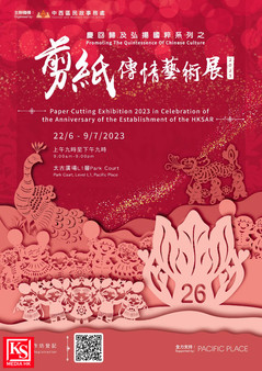 中西區民政事務處為慶祝香港特別行政區成立二十六周年,將於 2023 年 6 月 22 日至 7 月 9 日假太古廣場舉辦為期 18 天的「慶回歸及弘揚國粹系列之剪紙傳情藝術展 2023」,一個以西方藝術科技融合中國藝術的剪紙藝術展覽。