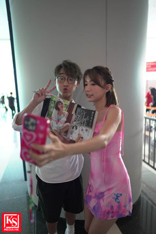 超人氣大馬女神Miko(黃潔琪)為第二本個人寫真集《Miko・琪幻日記》展開香港宣傳之旅,昨日(22 日)現身書展會場與香港Fans近距離接觸,吸引逾二百粉絲及圍觀途人到場,為爭取拍攝Miko的最佳角 度,不少攝影發燒友身貼身,如人牆般包圍書商的攤檔位置,場面相當墟冚。