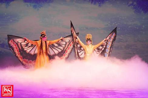 「創意班主」彭美施今年重點粵劇力作新《梁祝》,一連三場於西九戲曲中心大劇院演出圓滿成功,「雙梁配」梁兆明及梁非同完美演繹梁山伯與祝英台,既相愛卻無奈相分的經典凄美愛情故事,兩人無論服飾及舞台布景讓人驚艷,觀眾更被最後一幕重本投資特技CG效果,感到非常震撼。昨晚(26日)尾場,三度謝幕戲迷仍不捨,施姐再在台上表示自己今次很有滿足未有失落感,隨即再宣布明年1 月13及14 日載譽重演兩場,選這個日子含有雙重意義,既以一生一世(13.14)來比喻梁祝至死不渝經典愛情,另一含意是戲迷對演員及粵劇一生一世不離不棄的支持,所以約定一生一世(1314)再聚於西九舞台。