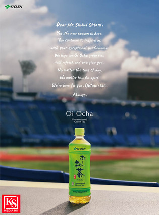 大谷翔平為日本職業棒球選手,同時擔任投手和指定打擊手。他在國際賽場上一直表現出色,特別是 2023 年的世界棒球經典賽上,大谷憑藉頂尖的投打兩端表現,幫助日本隊擊敗勁敵美國,奪得冠軍並獲得大會 MVP 的榮譽。同年 8月,大谷翔平更被美國知名雜誌《新聞週刊》的日本版評選為世界尊敬的百大日本人之一!而大谷翔平正是伊藤園的忠實粉絲,「Oi Ocha」綠茶是大谷翔平在美國日常生活中必備飲品之一,不論在比賽還是記者會傳媒都多次拍到他手拿伊藤園「Oi Ocha」綠茶喝得津津有味。隨著合作展開,伊藤園向活躍在洛杉