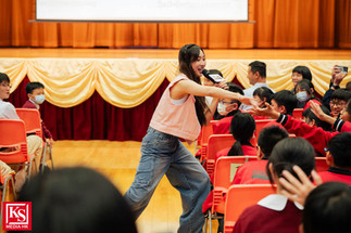 接着,他走到台下與同學們近距離接觸,眾人紛紛把握機會自拍、握手、擊拳,看到他們如此熱情,柏豪更肉緊攬實同學仔獻唱《12號》及《同天空》。他又在分享環節鼓勵同學多作不同方面的嘗試,亦要學習如何為自己減壓。