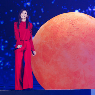 「影歌雙棲實力女神」蘇慧倫睽違六年再度登上《紅白》舞台,此次火力全開、氣勢登場,一口氣祭出兩大重量級亮點,率領16位舞者霸氣登場,舞群戴上紅色手套、黑色面具與披風,整齊劃一的手部動作帶出層層堆疊視覺效果,氣勢磅礴的手型舞搭配重新編曲的〈929〉,瞬間點燃全場氣氛。緊接著,5米高的巨型黃色月亮升起,蘇慧倫以搖滾編曲唱響經典〈黃色月亮〉,為舞台掀起另一波高潮。而在後台,蘇慧倫也與許久未見的好友們開心寒暄。拍照時她手比著「YA」,卻突然和一旁的蕭景鴻(阿弟)聊起「父母經」,直呼孩子們放寒假在家真的忙翻天,阿弟則笑說:「我們家三個!還要陪女兒去拍戲,當她的助理。」讓蘇慧倫忍不住大讚他是「孝順的爸爸」。